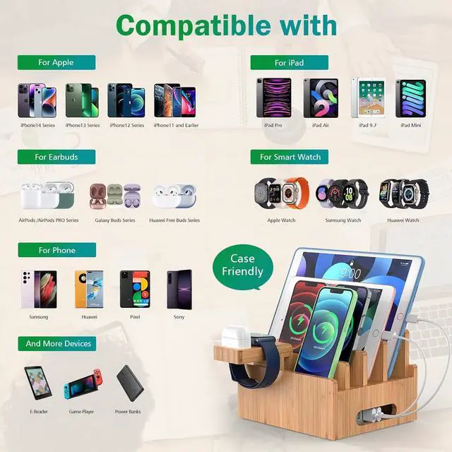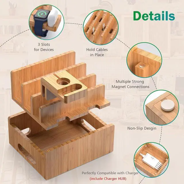 Next page of related Sponsored ProductsSponsored2 in 1 Watch Charger Cable for iWatch and iPhoneLamicall Apple Watch StandiPhone Charging StationNightstand End Table with Charging Station Bamboo Charging Station Multifunctional Docking Stand Pezin & Hulin Bamboo Charging Station for Multiples Devices Dooking Stations Organizer for Cellphone, Tablets, Smart Watch & Earbuds and more Different Spacing Large Base Storage Multi Wire Slots Watch & Earbuds Stand