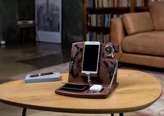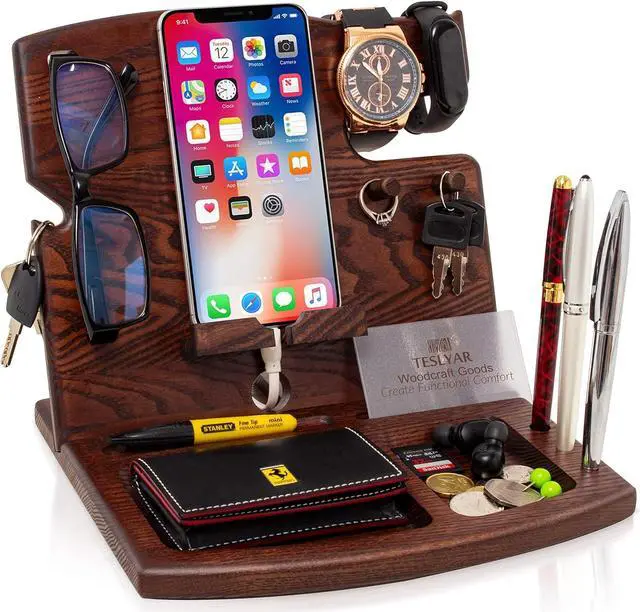 Next page4.5 out of 5 starsTESLYAR Gifts for Men Wood Phone Docking Station Fathers Gift Desk Organizer Nightstand Gifts for Dad Gifts for Him Birthday Anniversary Xmas Gifts Mens Gift Ideas Key Holder Wallet Stand