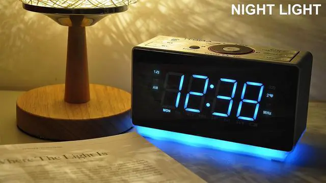 The alarm clocks 1.4-inch Ice Blue LED display screen showsthe time in large and ultra-clear numbers, makes it easy to read fromacross the room at any angle.