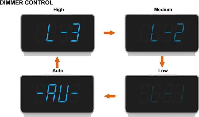 Large 1.4" dimmable LED display offers four brightnesssettings (high, medium, low, off) to adjust the display to fit yourpersonal preference at the touch of a button.