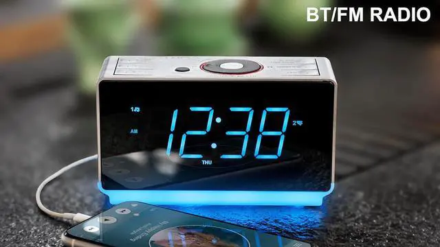 Large Display Bedside Clock with Night Light Basic Function Large Time Display3-Level Brightness & Auto Dimmer USB Charger Bluetooth Wireless Speaker / FM Radio / USB Charging Port Loud Alarm Clock for Heavy Sleepers