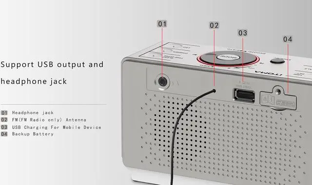 FM frequency (87.5-108MHz) with memory storage for up to 20 programmable radio stations.External cable antenna for easy reception everywhere.