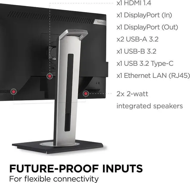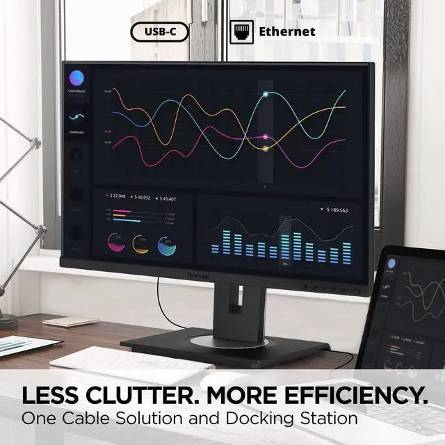 Designed to boost productivity and maximize output, the ViewSonic VG2456 is a 24 docking monitor that transforms your desktop into a streamlined and efficient workspace. Enjoy reliable and flexible network connectivity with the integrated gigabit Ethernet port, while the latest USB 3. 2 Type-C connectivity makes dual-monitor setup a breeze. Thats not all, the integrated USB hub also provides single-cable simplicity for connecting and charging your peripherals and accessories. A best-in-class ergonomic design features 40-degree tilt and bi-directional pivot so your screen and workspace are as comfortable as you need. In addition, the included vDisplay software gives you quick and easy OSD control, as well as customized screen templates for easy multi-tasking. This monitor is also shipped in biodegradable packaging, along with an easy-to-install quick release stand that makes for quick deployment and a lower total cost of ownership.