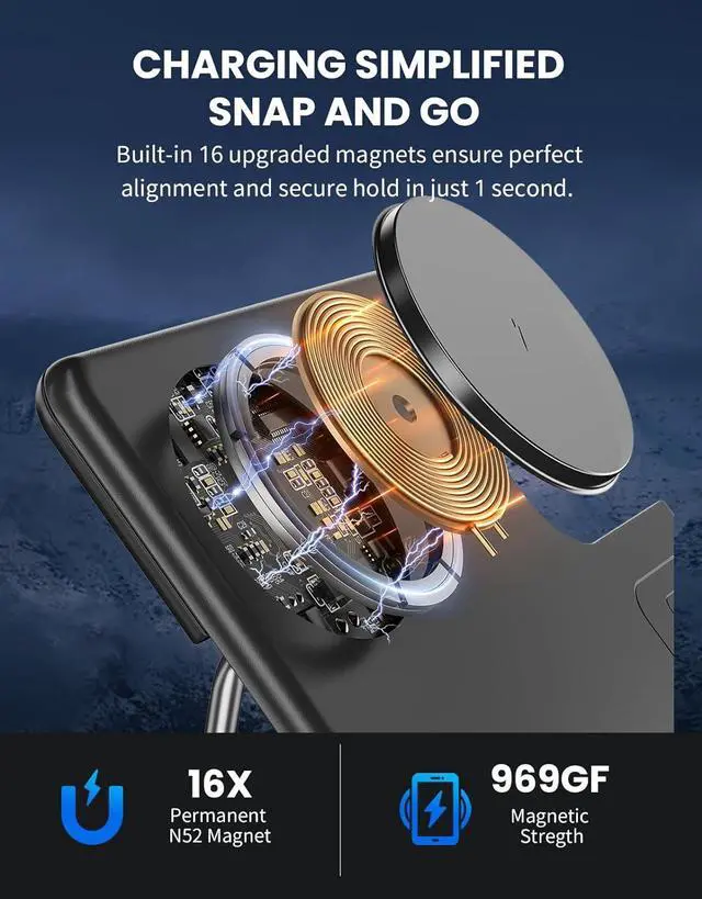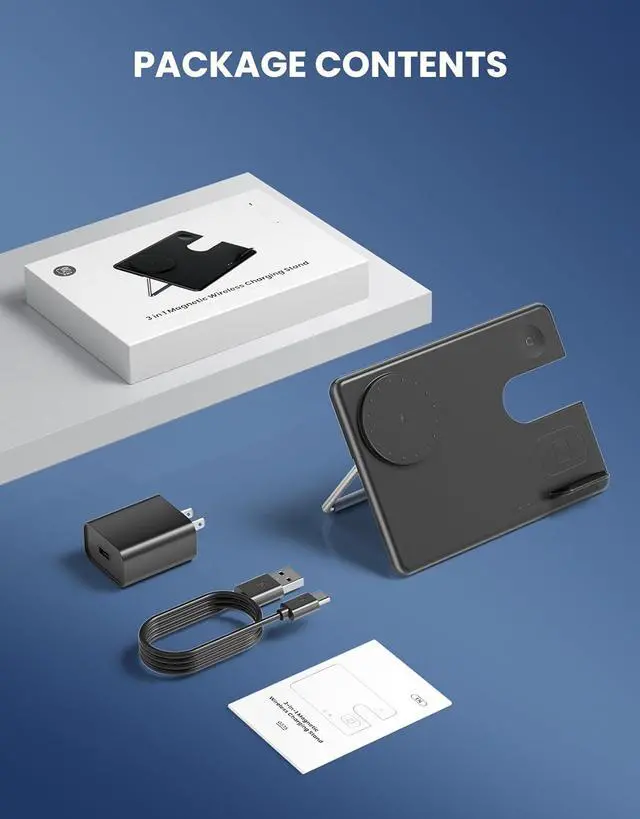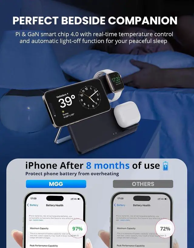 Wireless Charger Stand for MagSafe, MGG 3 in 1 Magnetic Charging Station for iPhone 14/13/12 Pro Max/Mini/Plus, Portable Charging Pad Dock for Apple Watch Ultra/8/7/6/5/4/3/2/SE, AirPods Pro/3/2