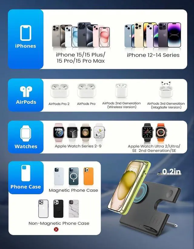 MGG 3-in-1 Charging Station for Magsafe: Wireless Charger Stand for iPhone 15/14/13/12 Pro Max/Plus/Mini - Magnetic Phone Pad for Apple Watch Ultra 2/Series 9/8/7/6/5/4/3/2/SE, AirPods Pro 3rd/2nd