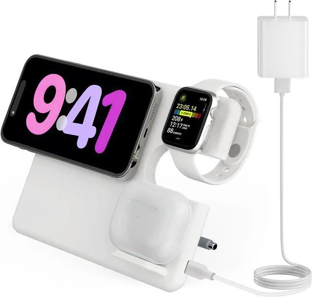 Made for Apple Users: Charger dock is compatible with iPhone 14/ 14 Plus/ 14 Pro/ 14 Pro Max/ 13/ 13 Pro/ 13 Pro Max/ 12/ 12 Pro/ 12 Pro Max/ 11/ 11 Pro/ 11 Pro Max/ XS/ XS Max/ XR/ X/ 8/ 8 Plus/ SE/ SE 2, iWatch Ultra/ 8/ 7/ 6/ SE/ 5/ 4/ 3/ 2, AirPods Pro 2/ 3/ Pro/ 2.