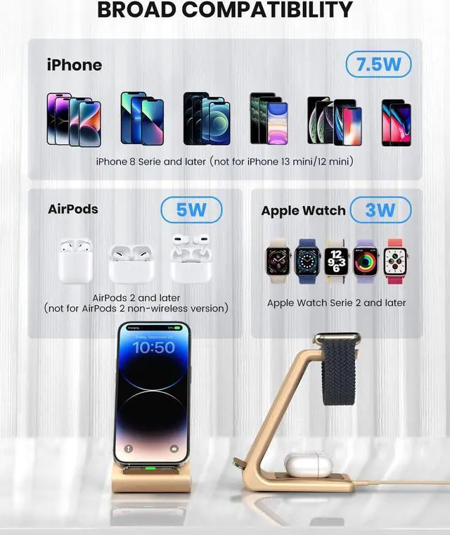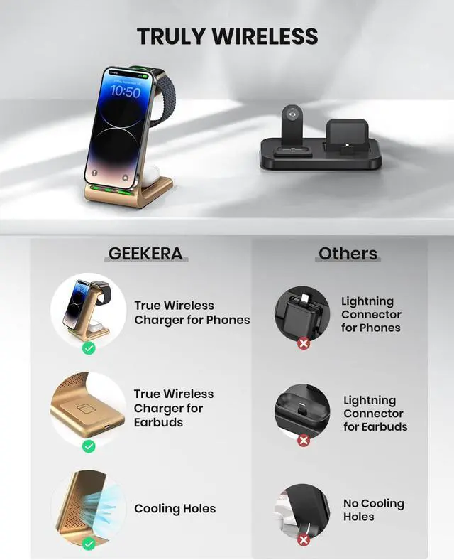 Next page4.5 out of 5 starsWireless Charging Stand, GEEKERA 3 in 1 Wireless Charger Dock Station for iPhone 15/15 Pro/15 Pro Max/14 Pro Max/14 Pro/14 Plus/13/12/11/X/8 Series, Apple Watch Ultra/SE/8/7/6/5/4/3/2, AirPods Pro/3
