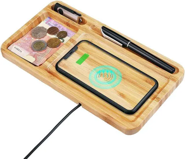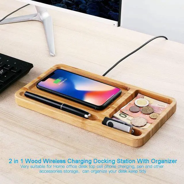 2 in 1 Wireless Charging & Organizer Dockingphone wood wireless charging station & desk wood organizer pad, let your desk keep tidy, fast charge your phone wirelessly, it is a perfect gift for your friends and family.
