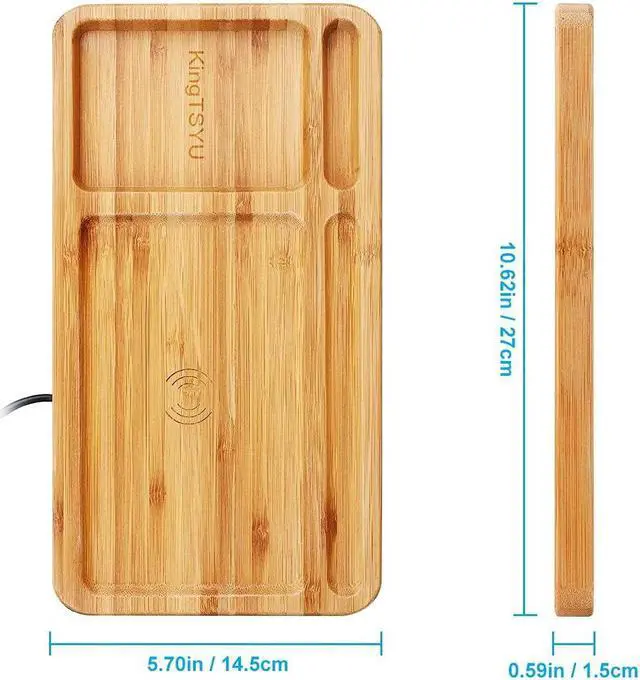 15W Wood Phone Wireless Charging Station with Desk Organizer Pad, Bamboo Qi Charger Docking Tray Key Pen Holder Wooden Dock Station for iPhone Android Samsung for Nightstand Home Office Gift KingTSYU