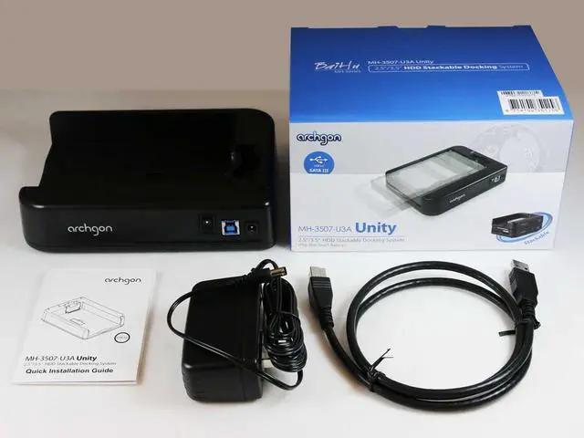 Archgon unity I MH-3507-U3A is the first flat type of hard drive docking station in the world. Compared to traditional vertical type docking station, the benefit of flat/horizontal type design is in order to alleviate the impact of vibration on drive's SATA connector. In addition, users could eject the drive without any damages to hard drive connector by using Archgon patented drive ejection button. Both these two ways could extend the lifetime of hard drive efficiently. Innovative stackable design allows heavy users to save space as well.