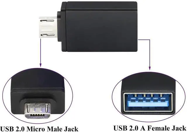 • Transfer and OTG:USB A 2.0 female to micro USB male converter, Versatile OTG adapter is for watching movies, viewing pictures,listening to music and transferring files by connecting a flash driver or camera.you can sync, charge and transfer data. Data transfer speed is at the standard of USB 2.0/480 Mbps/s.