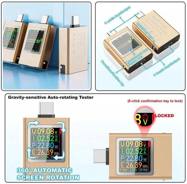 [Our Commitment] Included: 1 USB-C tester in champagne gold. We are committed to maintaining and continuously improving product quality. We believe in our products, which is why we offer an 18-month worry-free service. If you are not satisfied with our product for any reason, please feel free to contact our support team