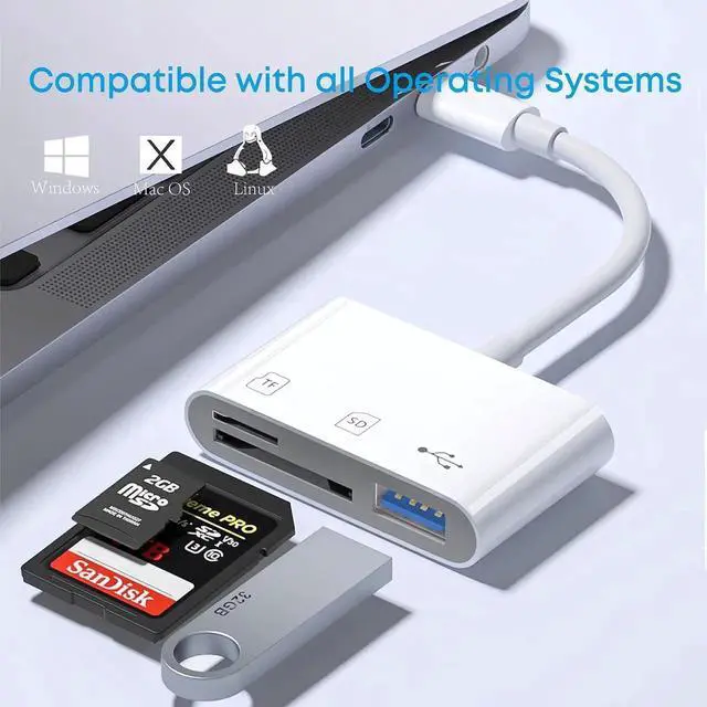 USB C SD/TF Card Reader Type-C Camera Adapter - 3 in 1 USB C to TF/SD/USB Disk Camera Memory Reader Adapter for iPhone15/15Pro and Above/iPad Pro/MacBook Pro/iMac/Samsung/Chromebook/Pixelbook More
