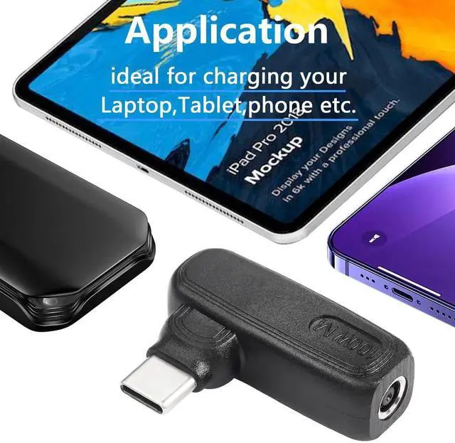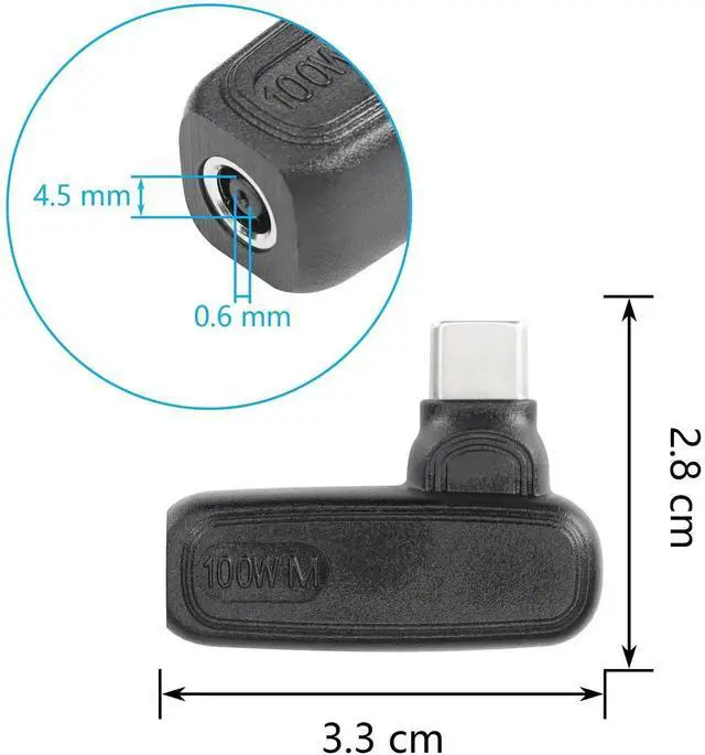 - [Convenient to Carry] DC 4.5mm x 0.6mm Female input to USB Type C male power charging adapter, travel friendly with lightweight & compact portable design that you can get rid of the heavy chargers / power bricks, and carry it in your backpack even in shirt pocket.