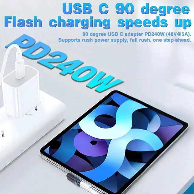 Ultra-High-Speed 90 degree USB C adapter delivers blazing-fast 80Gbps data transfer, perfect for large files, 8K video editing, and high-speed SSD backups. Supports 240W Power Delivery (PD) for rapid charging of MacBook M4 Pro/Max, iPad Pro