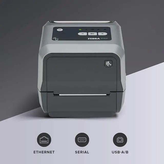 Zebra ZD621 Thermal Transfer Desktop Printer 300 dpi, USB, USB Host, Ethernet, Serial, 802.11 ac, BT4, ROW, Swiss and SimSun Font, EZPL ZD6A043-309L02EZ