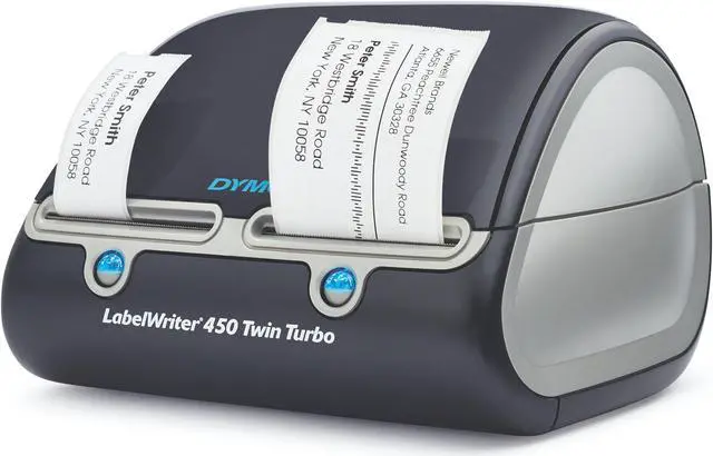 The DYMO LabelWriter 450 Twin Turbo features two rolls of labels ready to print at all timesenhancing efficiency by allowing you to print address labels and postage without swapping label rollsand prints up to 71 four-line standard address labels per minute for maximum productivity.
