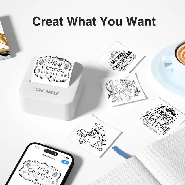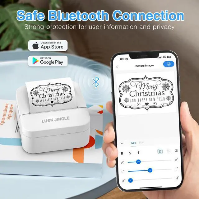 Smart APP Control & Rich Free Templates: Connect via Bluetooth to your smartphone or tablet (compatible with iOS and Android). The dedicated "Luck Jingle" APP offers a vast library of auto-updated, free templates including sticky notes, festive designs, labels, comic elements, and web print features. OCR scan function allows direct printing of scanned text, saving time on manual writing.
