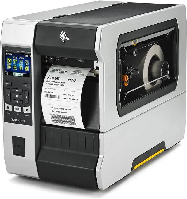 Ze bra ZT610 600 dpi Thermal Transfer and Direct Thermal Industrial Printer, 4.09" Print Width - Serial, USB, Ethernet, Bluetooth 4.0 Connectivity - Includes Tear Bar ZT61046
