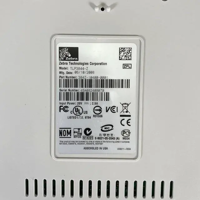 Ze bra TLP3844-Z Thermal Transfer Label Printer 300Dpi USB LAN 384Z-10400-0001 with Power Supply