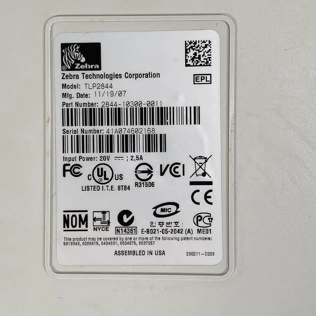 Ze bra TLP 2844 Thermal Transfer Label Printer 2844-10300-0011 USB, Bundle with AC Adapter
