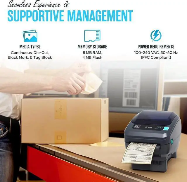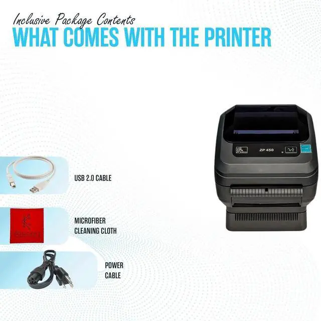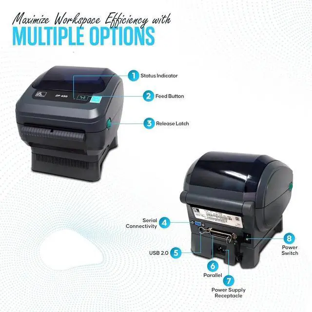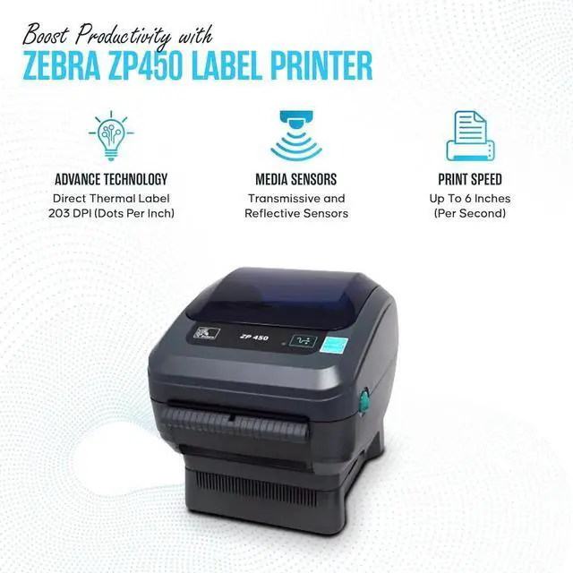 Ze bra ZP450 Direct Thermal Label Bar code Printer -1 Year Warranty - ZP 450 with USB 2.0 Cable & 3 Prong Cord - USB, Serial and Parallel Connectivity 203 DPI Resolution