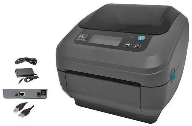 Ze bra GX420D Desktop Bar code and Shipping Label Printer, USB - Ethernet - Serial Interfaces, 4 Inch, Direct Thermal, with Power Supply