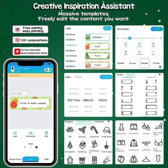 Powerful Mobile App with Massive Design Library: Connect wirelessly to your smartphone via Bluetooth. The free companion app (often "Print Master" or "Phomemo") offers hundreds of fonts, templates, icons, clipart, and symbols. You can also import logos, create barcodes, and save your favorite designs.