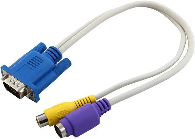 Work with laptops and desktops with VGA cards that has TV-out function capability.Through the VGA connector, display your PC images on TV or projector.Playing PC games on big screen TV, recording PC image by Video or S-Video.Simply connect from computer display card (15 pin D-sub output) to the TV, projector or equipment with RCA or S-Video in, easy to install.Compatible with desktop PC or laptop.Standard VGA connector.RCA TV-output and 4-pin S-video output.Note: Please make sure the Video Card of your system supports TV (RCA/S-Video) output through VGA port.