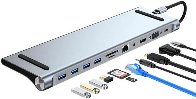 USB C Hub 11 In 1 Type C Dock 3.0 Splitter Multiport Adapter 4K HDMI-compatible RJ45 SD/TF VGA PD
