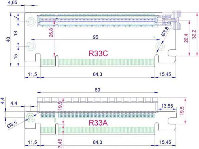 • Product name: PCIe x16 x8 x4 male to x16 female riser card