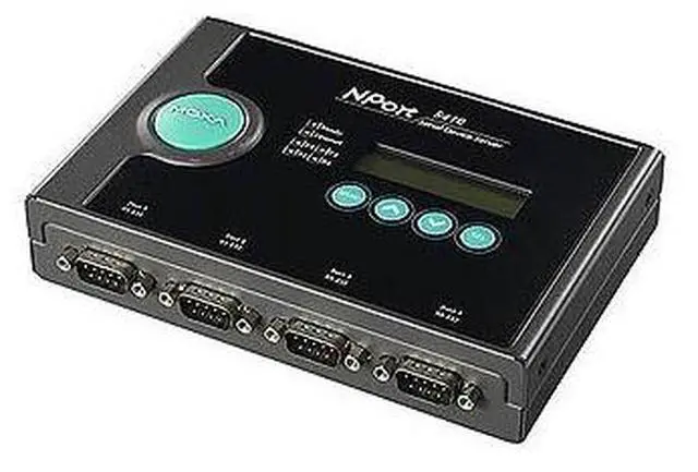 Moxa NPort 5410 w/ adapter - 4 port device server, 10/100M Ethernet, RS-232, DB9 male, 15KV ESD, 12-48 VDC