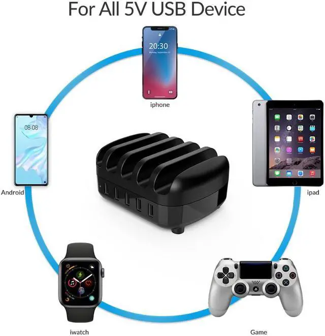 Full power, charging 5 tablets at one time; Innovation with high energy, concentrated charging 5 devices Enthusiast 5 ports USB charger, 40 total power, charging 5 tablets at once, convenient for usage in resturant, hotel, school, shopping mall, airport and etc.