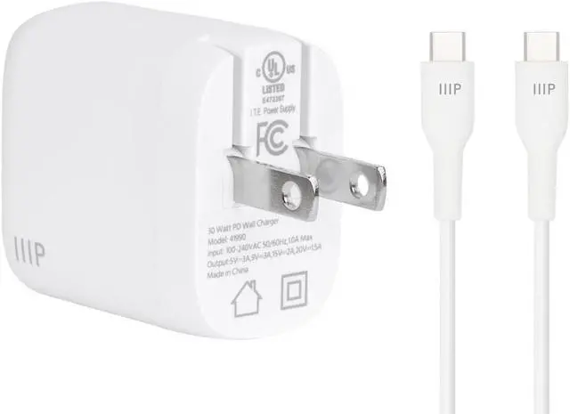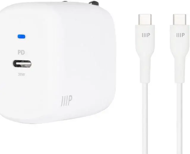 Monoprice iPad Pro Charging Bundle - 30W 1-port PD GaN Technology Foldable Wall Charger and 1.8m (6ft) Fast Charge USB-C