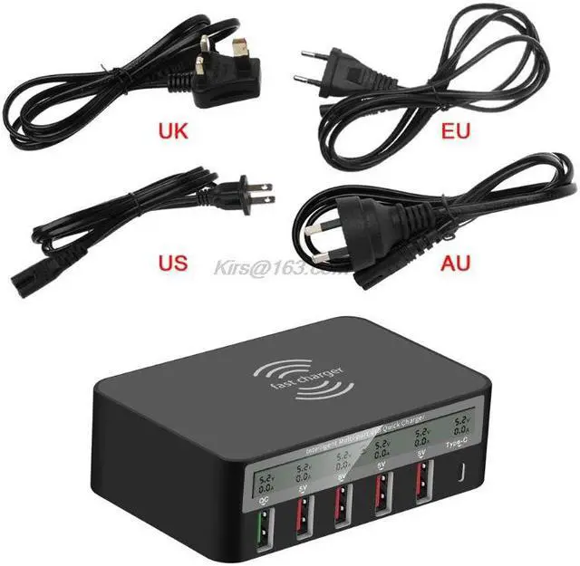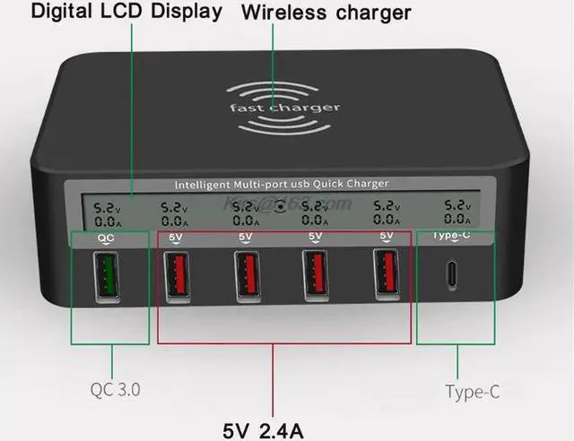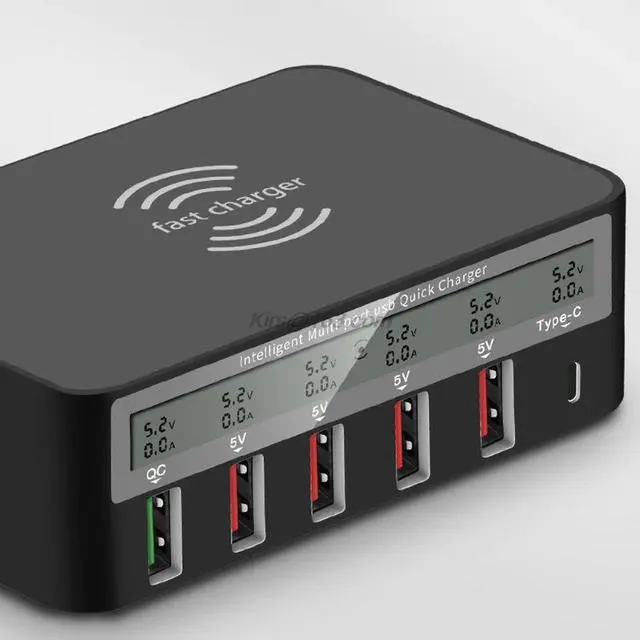 Multiple USB Charger With Smart LCD Display, Smart LCD screen to show the charging status(output voltage and current) of every USB ports,Wireless Charger without display.