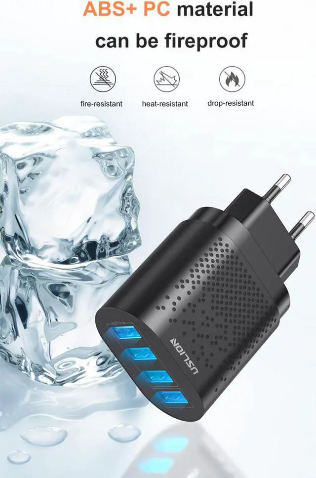 Simultaneously charge 4 devices at the best charging speed.*The fire-resistant PC material is one-time formed and durable.