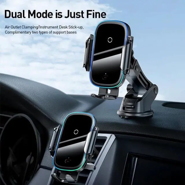 Qi Wireless Charger & Phone Holder2-IN-1 Design Combines the Qi Wireless Charger and a car phone holder.Wireless car charger offers fast charging for your phones and save you from the messing with cables and cases while driving.