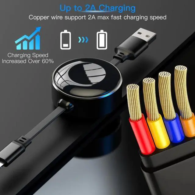 Fast ChargingHigh quality copper wire cable and intelligent chip support 2A max charging, increase the charging speed up to 60%.
