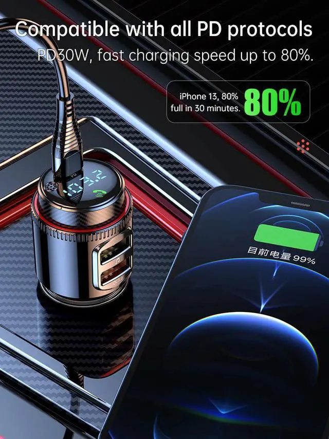 1.QC3.0 Super Fast ChargingSupport QC3.0 super fast charging, chargewhen you get in the car, and fully chargewhen you get out of the car.