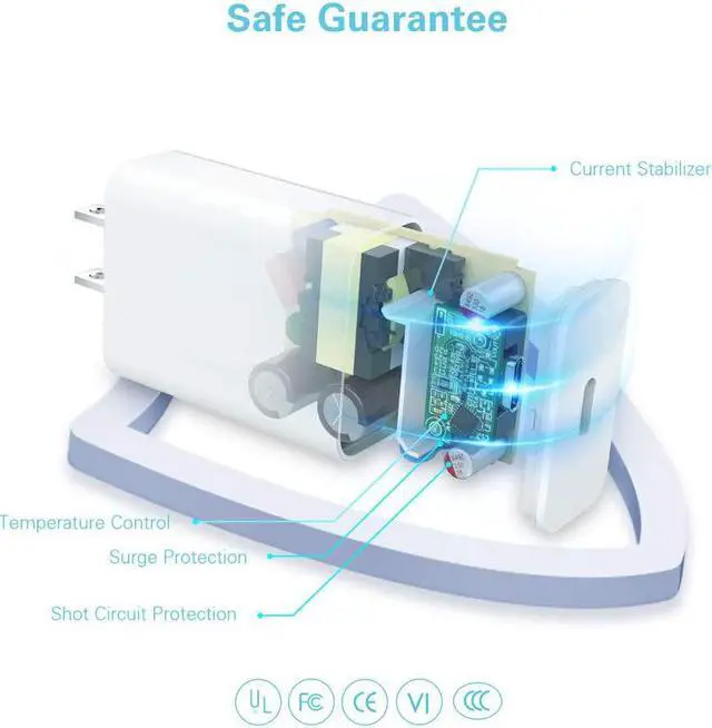 Super Safety: UL Listed, CE, FCC, CCC, VI, using the highest quality safeguards components to prevent over-current over-voltage over-heating & short-circuiting. exhaustive protection while charging.