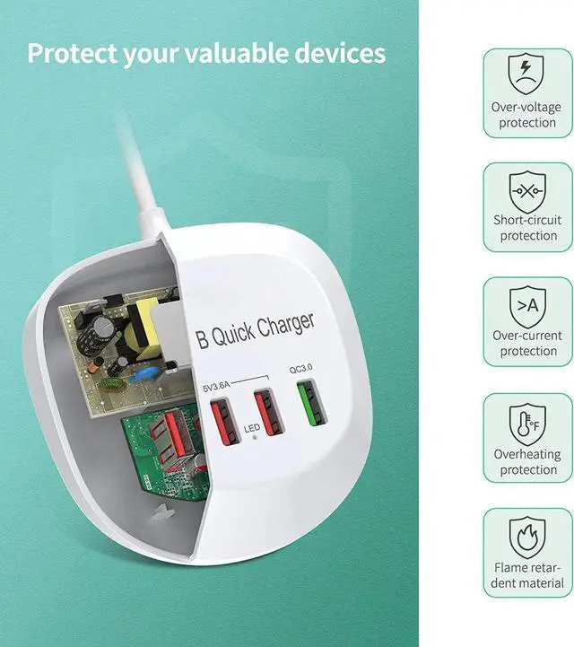 All-round Safety Protection: USB charging station has short circuit / over-current / over-voltage / overheating protection, which can protect your valuable devices in all dimensions. This 4 port black usb hub charger is perfect for home office charging, & essentials like rv, dorm room, travel hotel, etc.