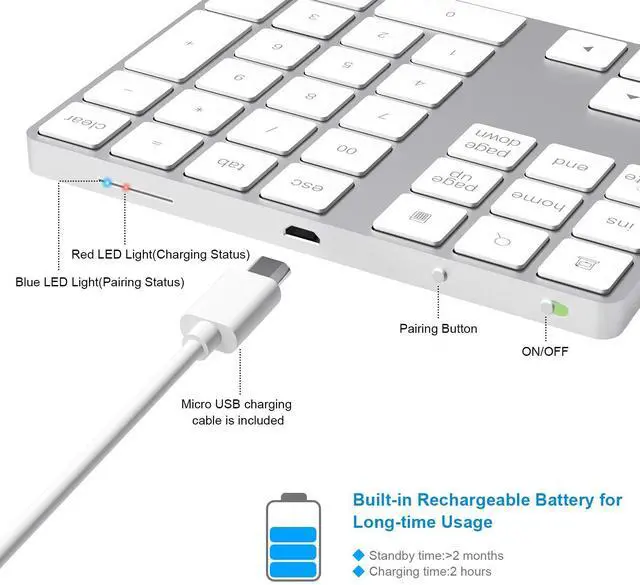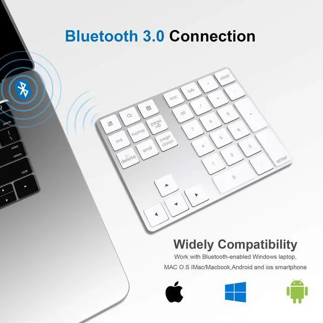The Aluminum Slim Wireless Keypad uses Bluetooth technology, making it compatible with any Bluetooth–enabled device. It is easily connected with mac or laptop via bluetooth 3.0. After first use, the keypad will auto connected every time when you turn on keypad bluetooth again.