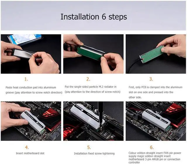 1. High quality thermal conductive silicon wafer, in full contact with M. 2280 solid-state hard disk, can quickly consume heat through the all-aluminum radiator.