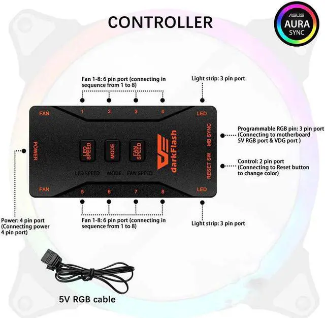 5.Certified compatible with Asus aura, as rock RGB, Gigabyte fusion, MSI RGB