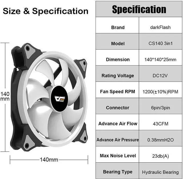 Rated Voltage: DC 12V(fan) / 5V(LED)