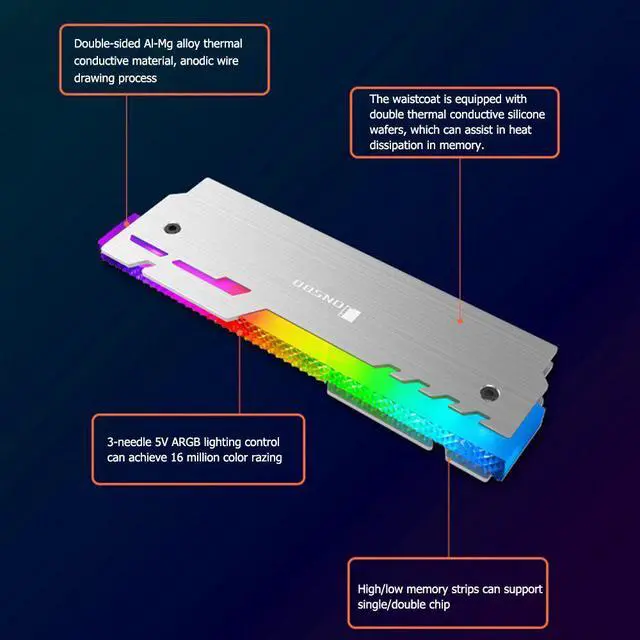 NC-3 2pcs RAM Heatsink Radiator Cooler 5V A-RGB Desktop Memory Cooling Heat Dissipation Pad