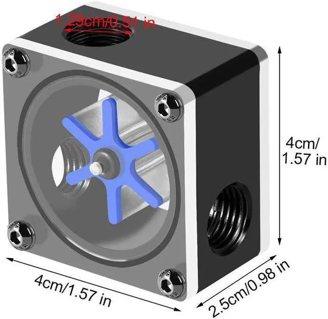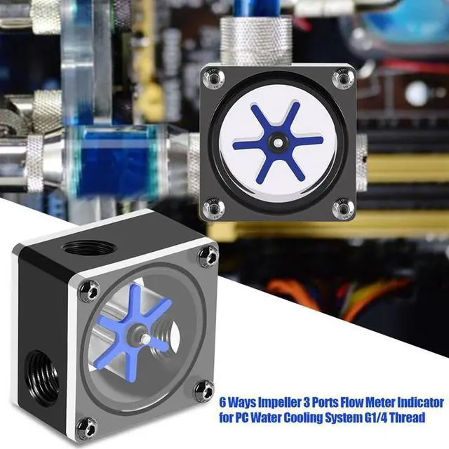 Meter Indicator, G1/4 Threaded 6 Impeller 3 Ways for Pc Computer Water Cooling System