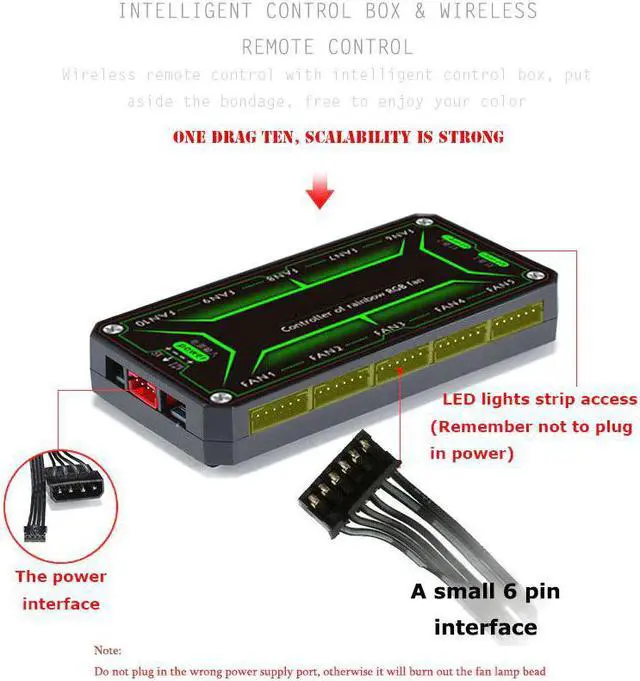 1)Single fan is with small 6 pin interface,it can only work with the controller. This controller is suitable for all fans of this brand.