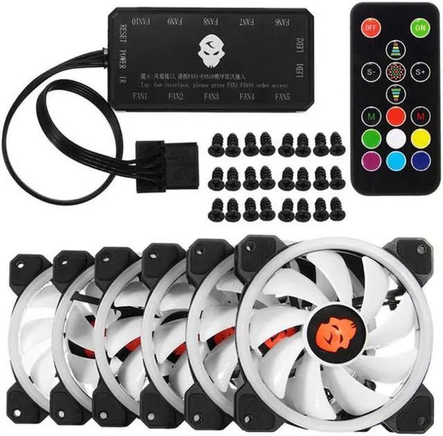 6pcs 120mm Computer PC Cooler Cooling Fan Double Ring RGB LED Fan With Remote Control 366 Modes 10 Level Adjust Speed For CPU