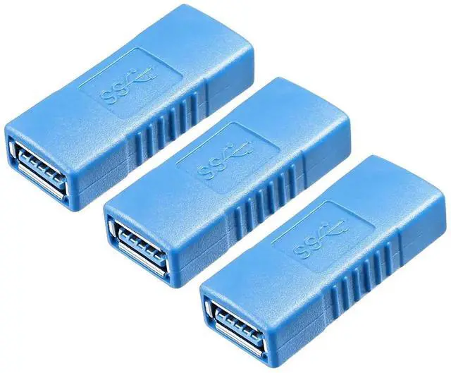 USB 3.0 Connector Female to Female Adapter USB 3.0 Coupler Adapter Converter Bridge Extension Coupler (Pack of 3, Blue)